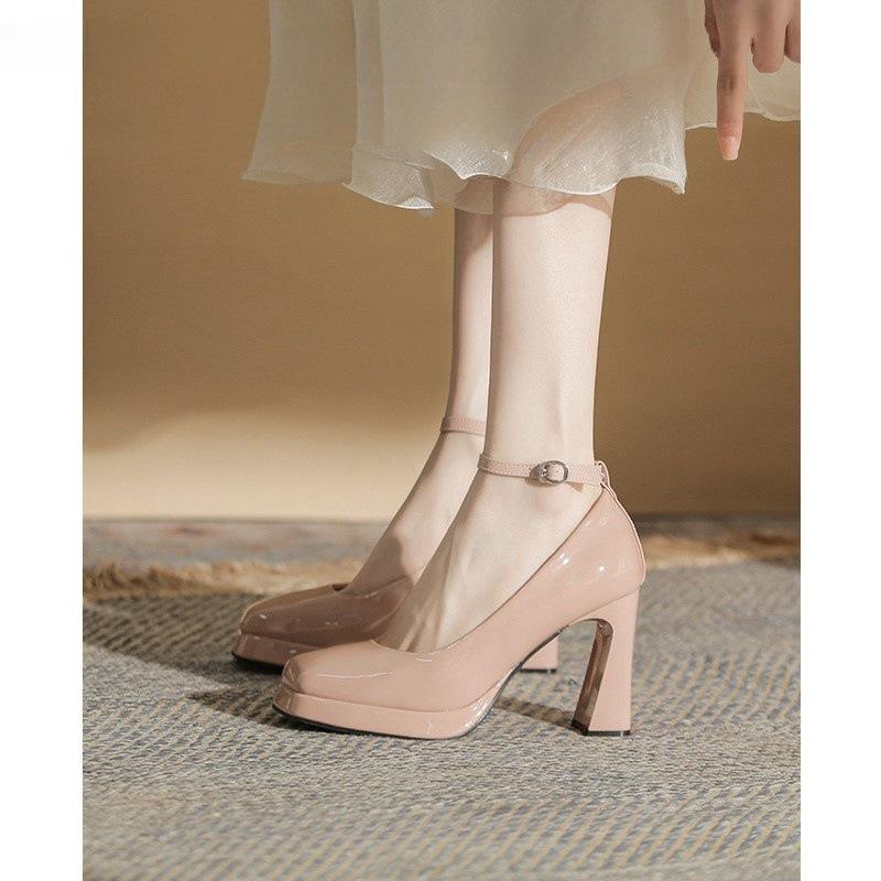 Zapatos Mary Jane de Estilo Francés para Primavera y Verano, Zapatos Planos de Cuero con Suela Gruesa de Estilo Británico Retro, Zapatos de Tacón Alto Dulces y Elegantes