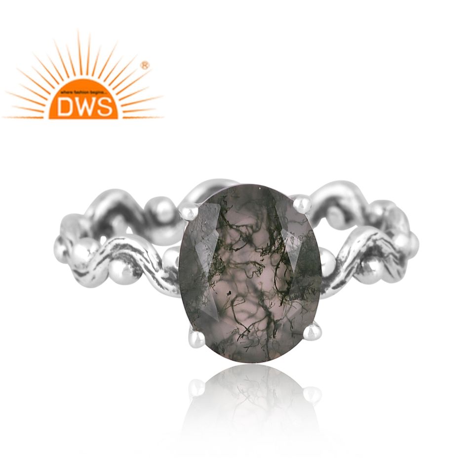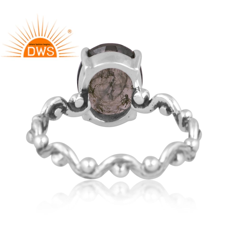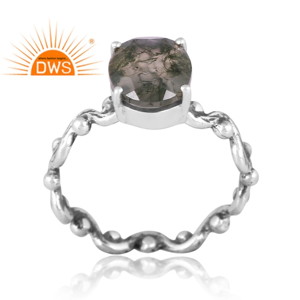 Anillos de plata de ley 925 con diseño apilable, joyería de piedras preciosas de ágata musgo Natural