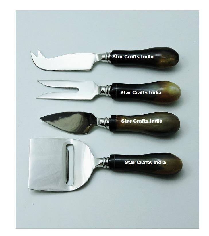 Juego de 4 Utensilios para Cortar Mantequilla con Cuchilla de Acero Inoxidable y Mango de Cuerno Negro, Decoración de Mesa, Juego de Cubiertos