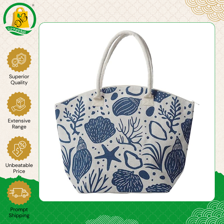 Última Llegada de Bolsas de Yute Ecológicas Personalizadas de Alta Calidad con Asas de Cinta Blanca para Compras y Playa