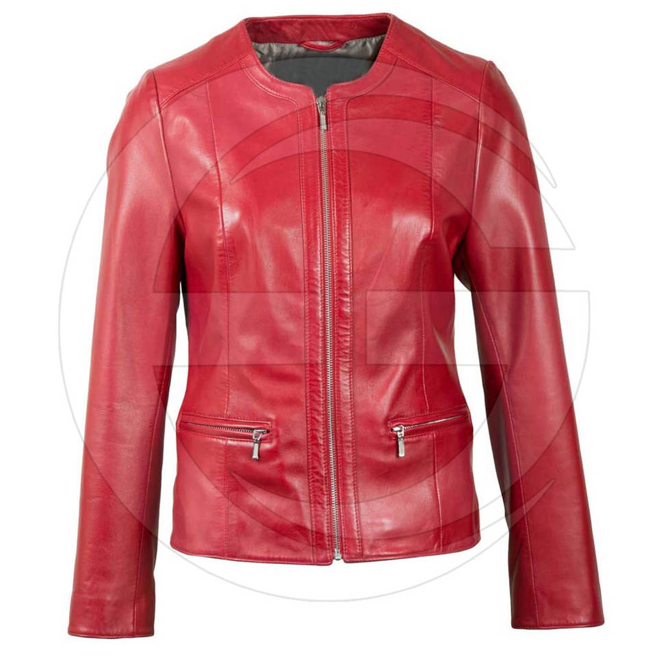 Chaqueta de cuero rojo de cereza, para mujer, último estilo