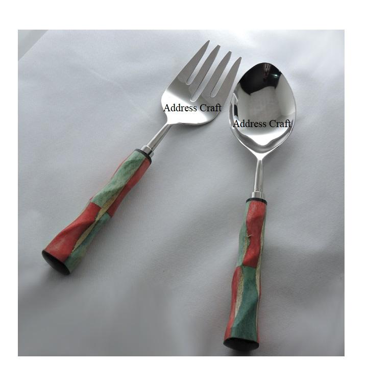 Herramientas esenciales de cocina de último estilo, cuchara y tenedor para servidor de ensalada de acero inoxidable, herramienta para ensalada, diseño moderno, mango de resina de madera