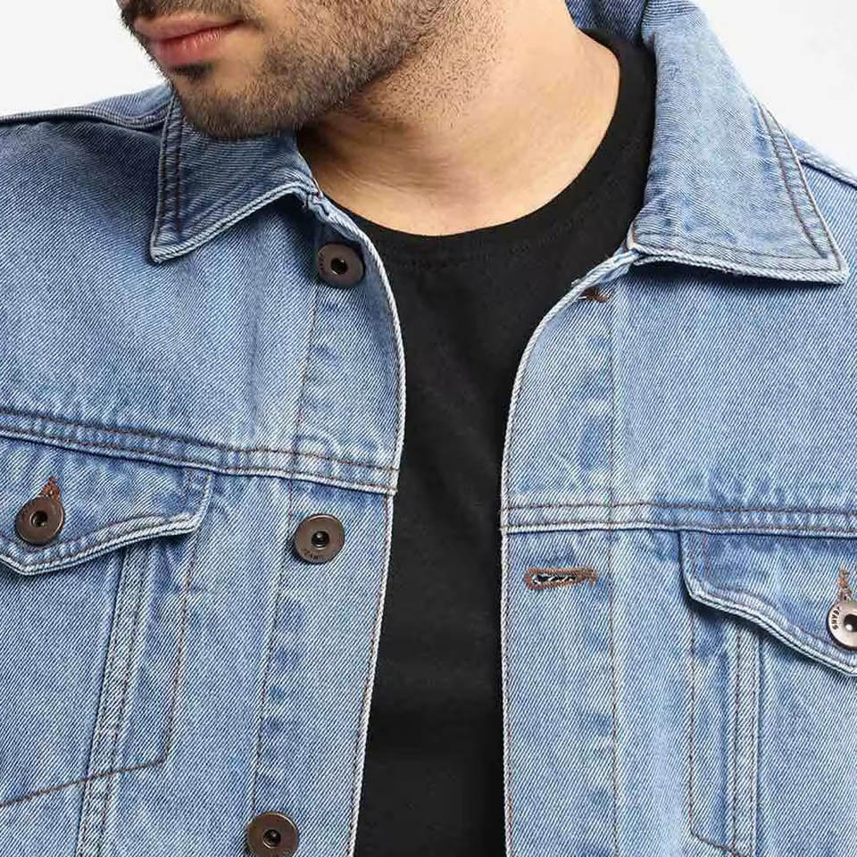 Parches bordados rasgados de último estilo, chaqueta vaquera para hombre totalmente personalizada, chaqueta vaquera para hombre lavada mediana de moda más nueva
