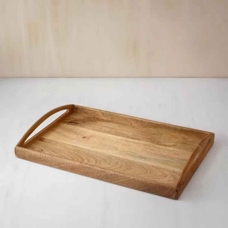 Bandeja de Servir de Madera de Acacia con Diseño Artesanal, Bandejas Decorativas de Madera Natural para Servir Alimentos