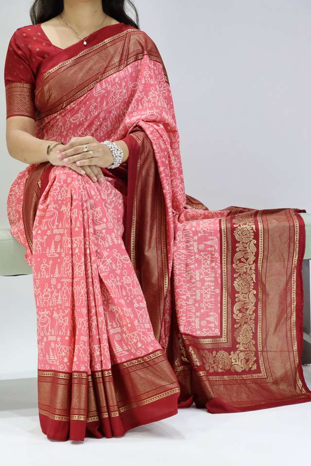 Product Name:Latest Trending Printed Tussar Silk With Foil Work Saree