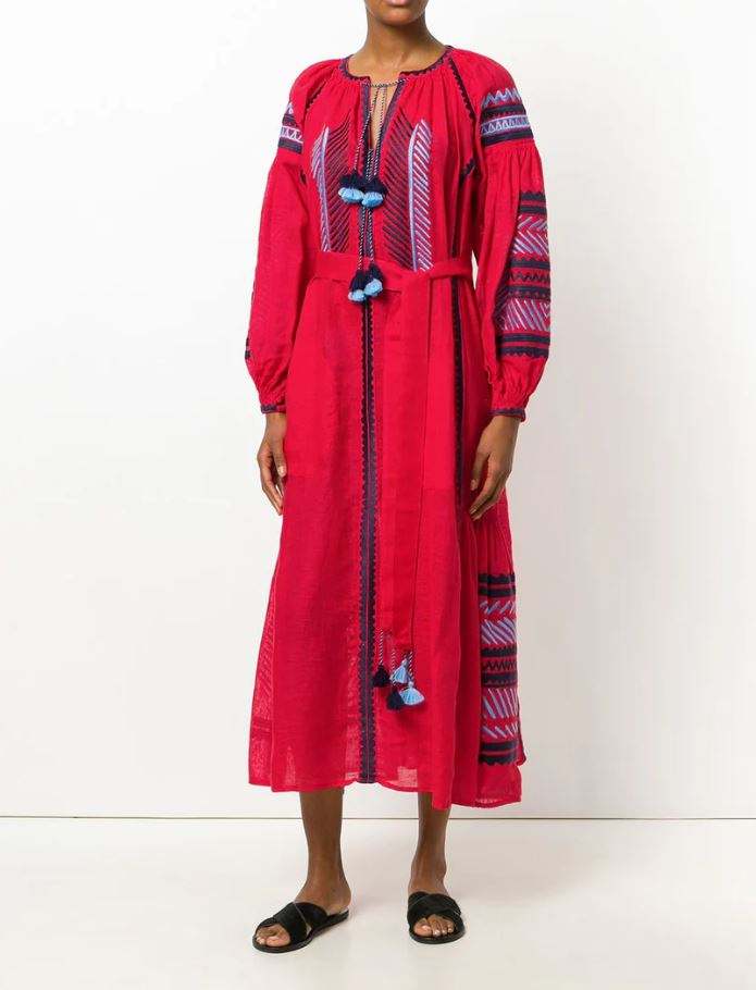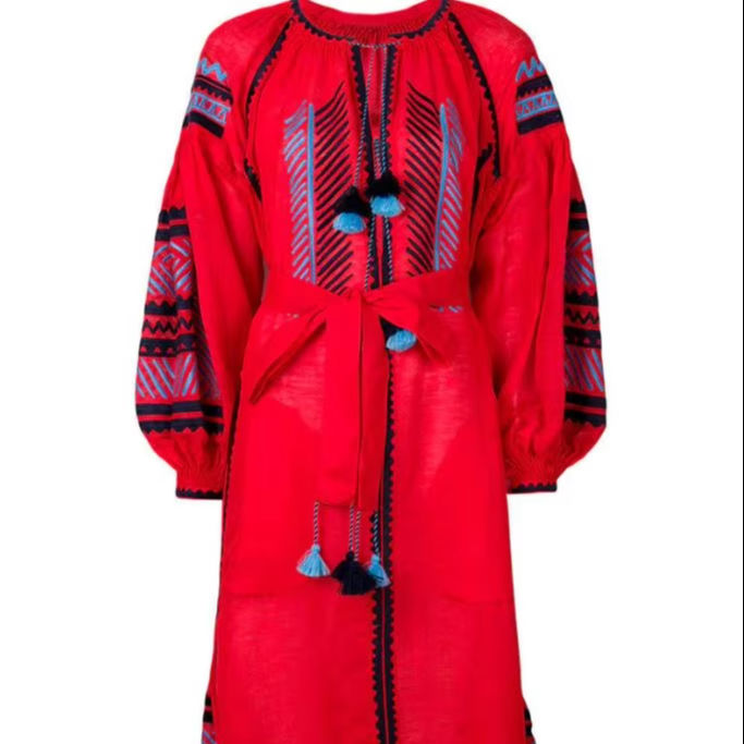 Última túnica bordada de manga larga hasta el tobillo túnica Vestido de playa ucraniano para mujer vestido ucraniano con decoración de encaje
