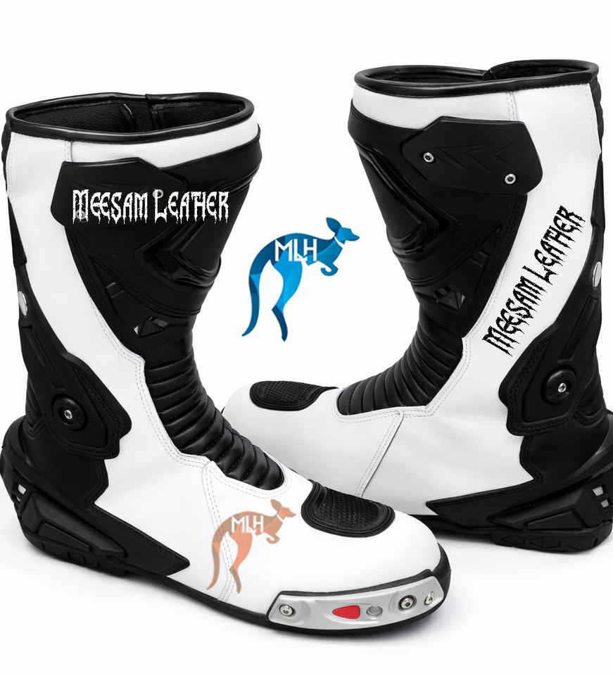 Botas de Motociclismo de Cuero de Diseño Exclusivo para Hombre, Forro de Malla de Primera Calidad, Estilo de Carreras, Ventiladas, Blancas