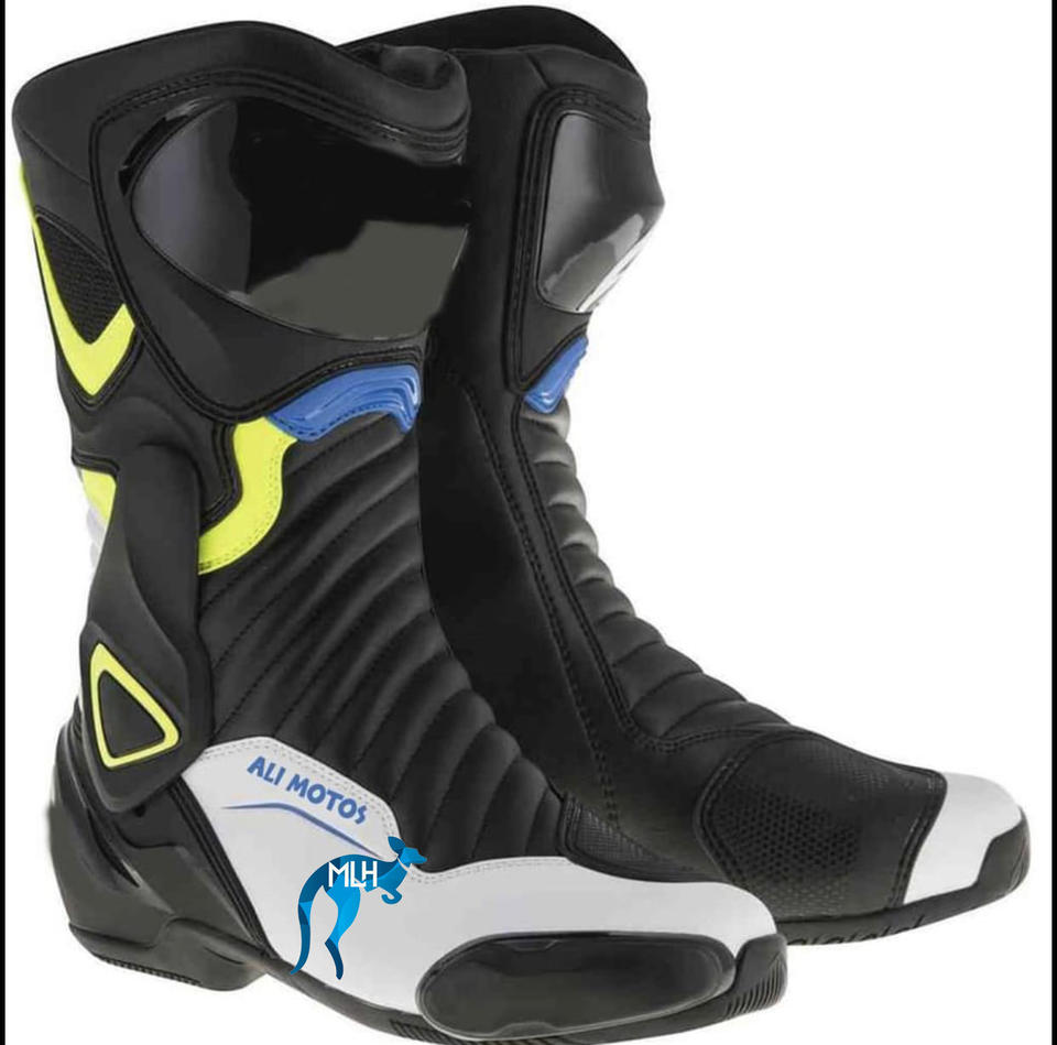Botas de Motociclismo de Cuero de Diseño Exclusivo para Hombre, Forro de Malla de Primera Calidad, Estilo de Carreras, Botas de Speedway
