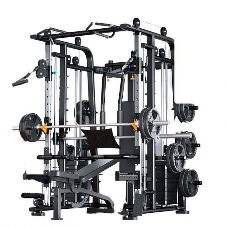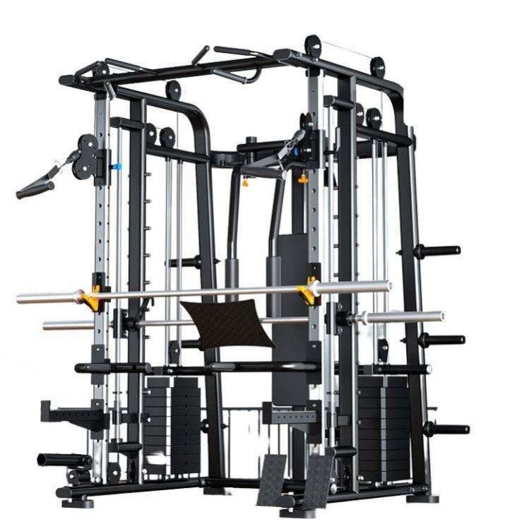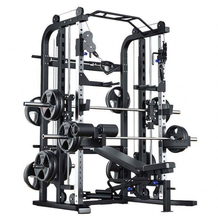 Último modelo de rack de potencia multifunción todo en uno, inclinable y con crossover, con barra guía vertical Smith y cable mejorado, profesional y ajustable.