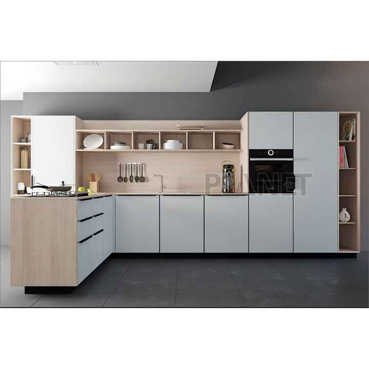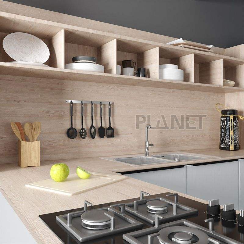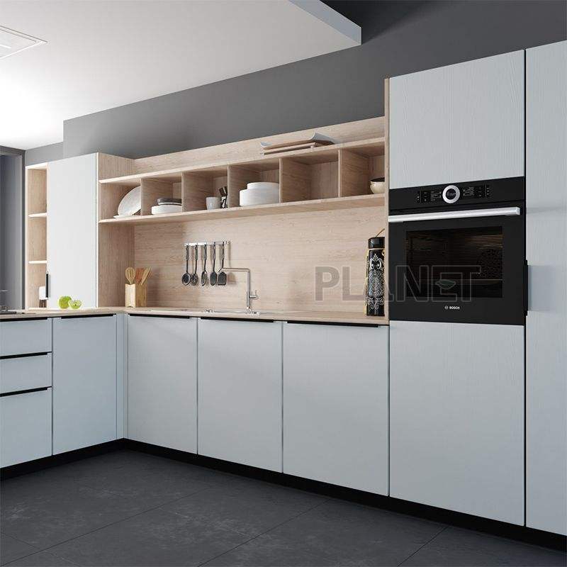 Último armario impermeable de diferente diseño de armario de cocina hoja laminada Madia Laccata Bianva para armario de cocina