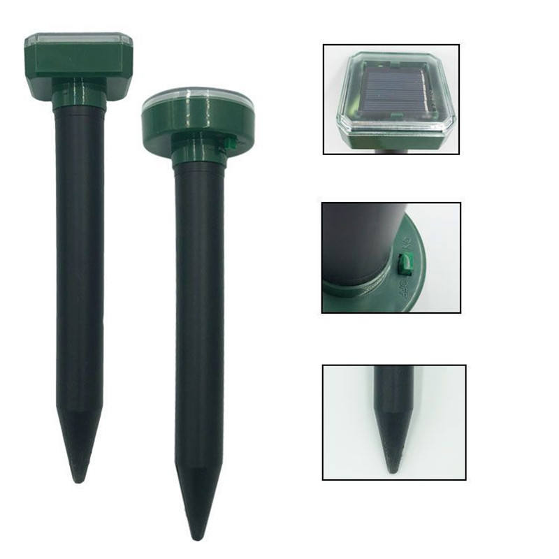 Repelente ultrasónico de roedores con energía solar, repelente de serpientes, topos, gofres y roedores, resistente al agua, control de plagas para exteriores, para césped y jardín