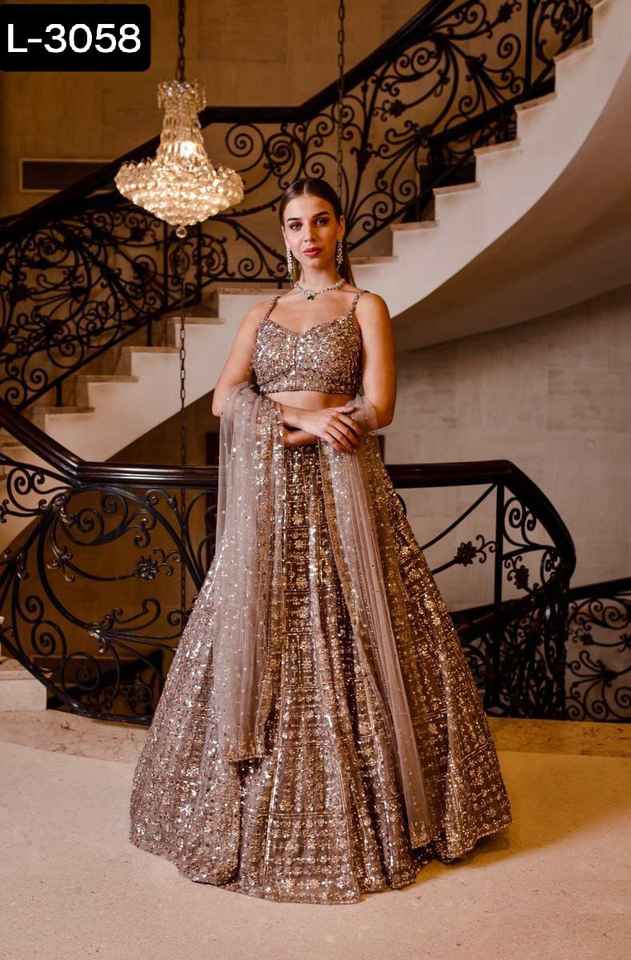 Última red elegante de diseñador de ropa de mujer con trabajo de secuencia de bordado Lehenga Choli con juego de red Dupatta Para Boda y Festival