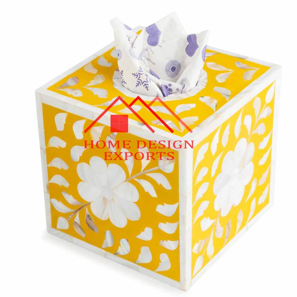 Soporte de caja de pañuelos decorativo con incrustaciones de hueso de último diseño para uso de vajilla para el hogar y el hotel servilleta decorativa con incrustaciones de hueso hecha a mano