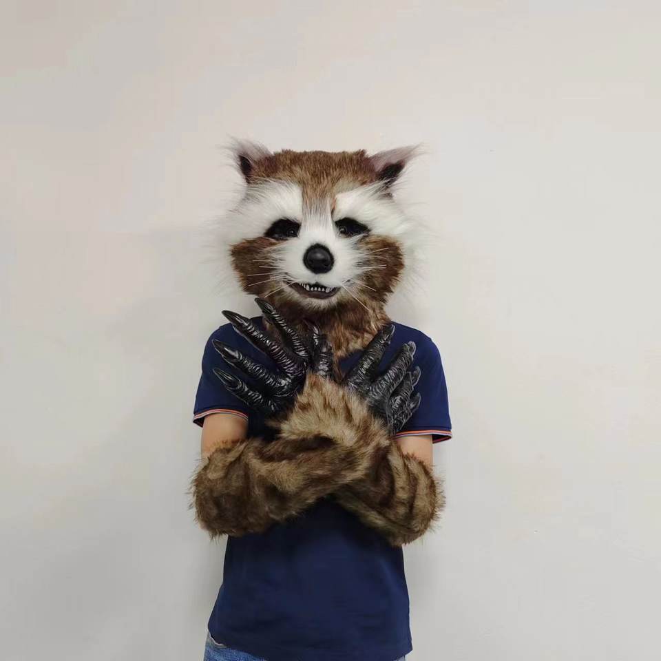Máscara de mapache de látex con piel recargable disfraz de Halloween para bodas y fiestas de Navidad casco de Cosplay de animales