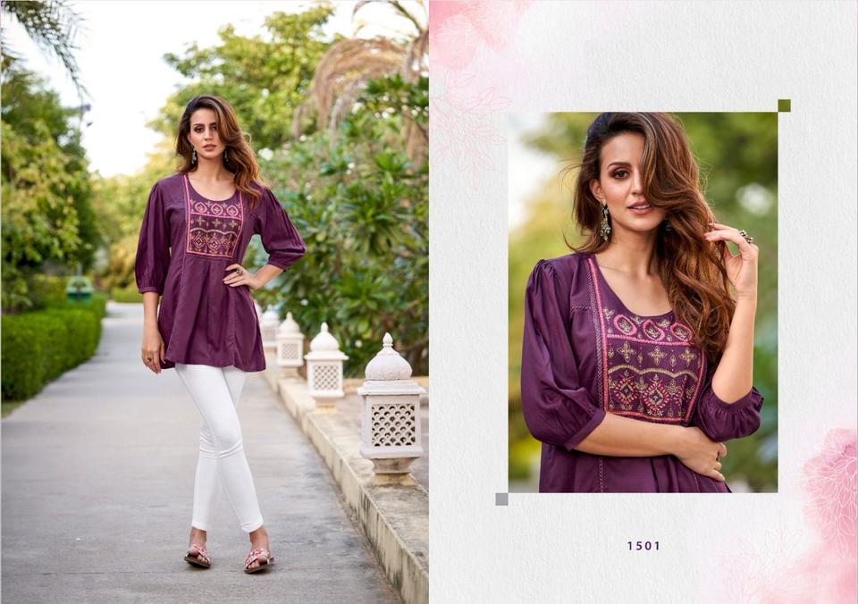 Nuevo Lanzamiento de catálogo Heavy Reyon Formal Western Top con bordado floral elegante Limpieza en seco Impresión digital tejida amigable