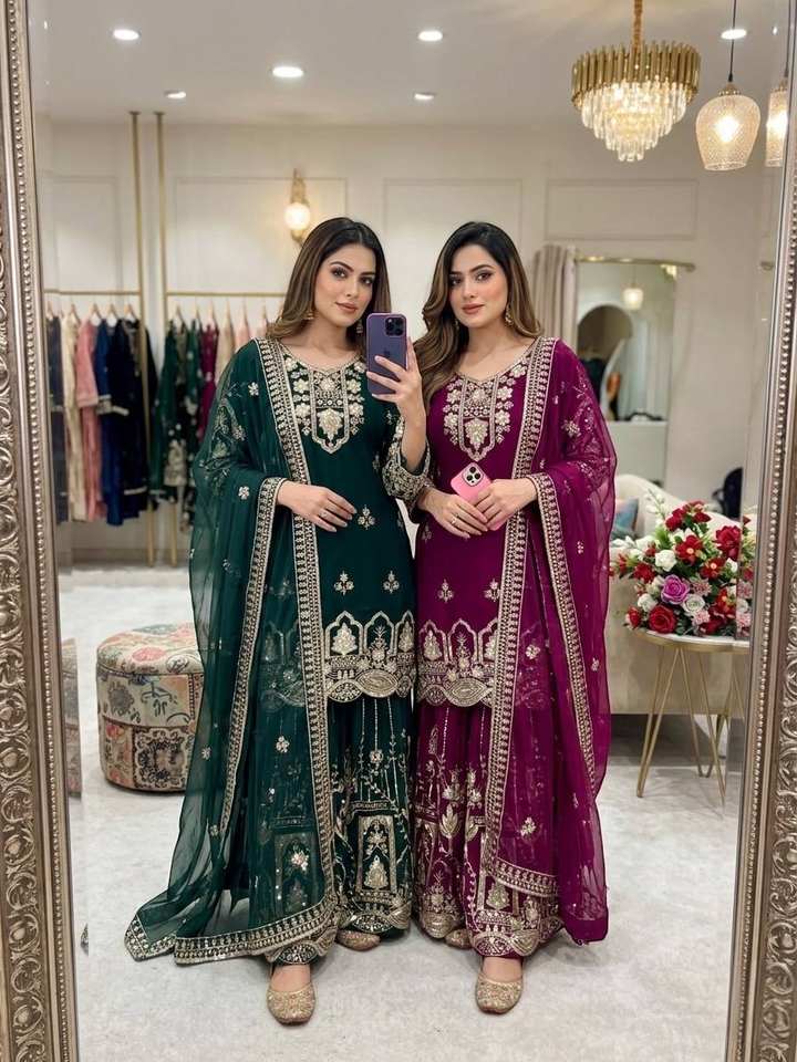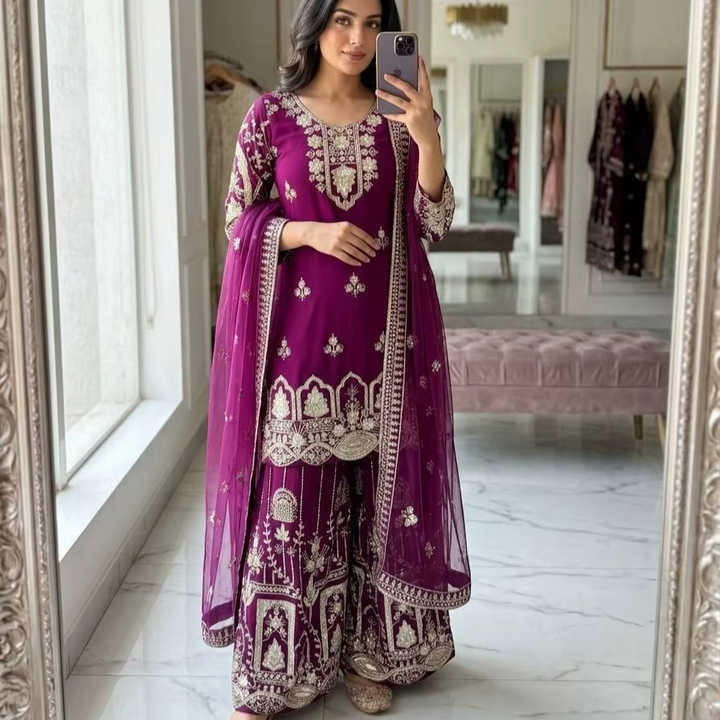 Lanzamiento del Nuevo Diseño de Moda: Conjunto Fox Georgette con Top, Sarara y Dupatta, Listo para Usar