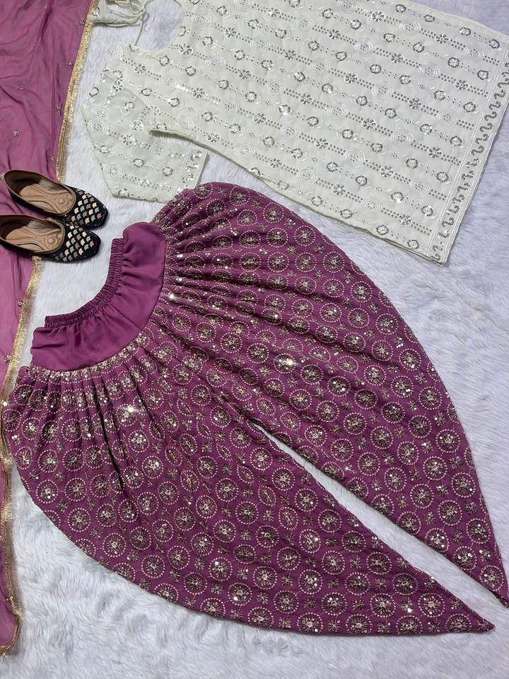 Lanzamiento del nuevo diseñador Party Wear Look Top Styles Pant And Dupatta Set Faux Georgette con vestido de trabajo de secuencia de bordado pesado