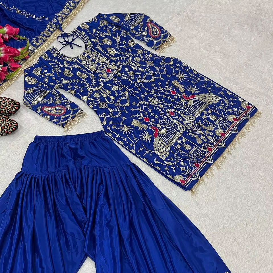Nuevo Salwar Kameez Tradicional de Diseñador para Fiestas, con Bordado Pesado, Lentejuelas, Manga Larga, Dupatta de Crepé Natural, Envío Rápido
