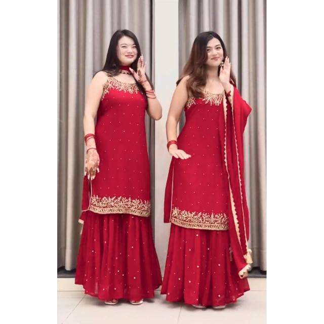 Nuevo Conjunto de Salwar Kameez y Dupatta Reversible de Georgette Sintética Pesada, Estilo Fiesta, para Todas las Temporadas