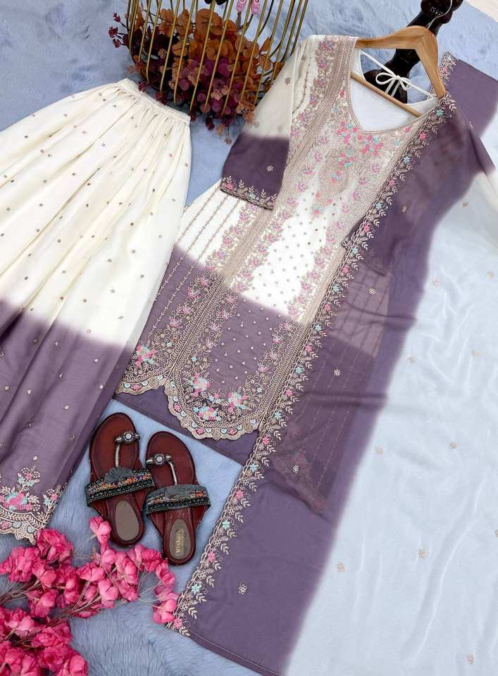 Lanzamiento del Nuevo Conjunto de Fiesta de Diseñador: Top de Georgette Pesado con Estampado de Estrellas, Pantalón Plazzo y Dupatta