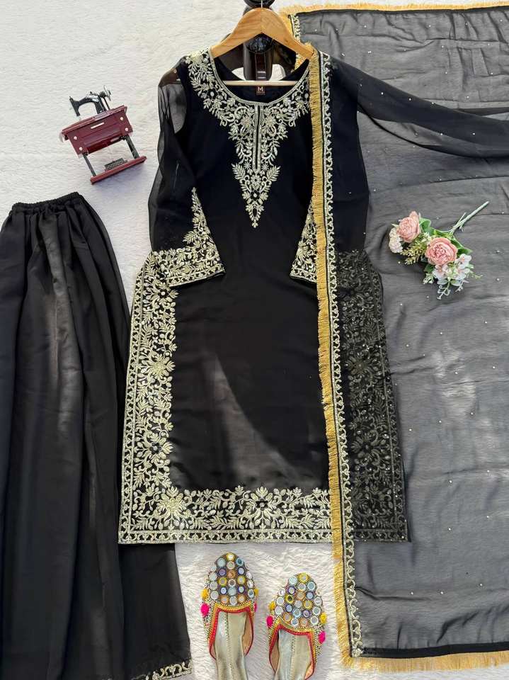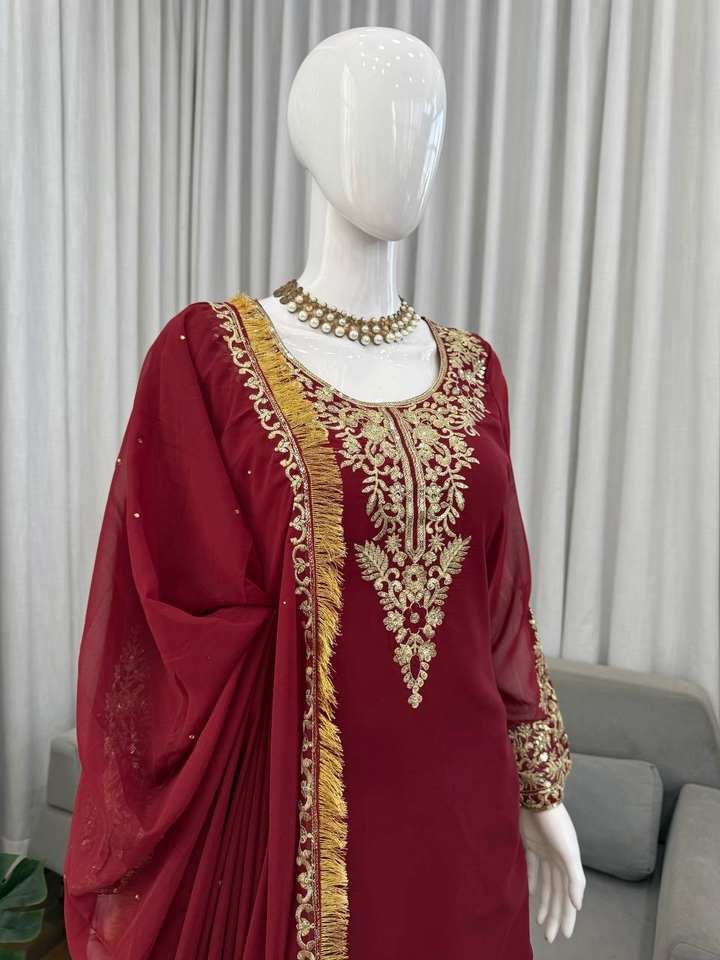 Lanzamiento del nuevo conjunto de fiesta de diseñador con top de satén y rayón y pantalones palazzo con dupatta.