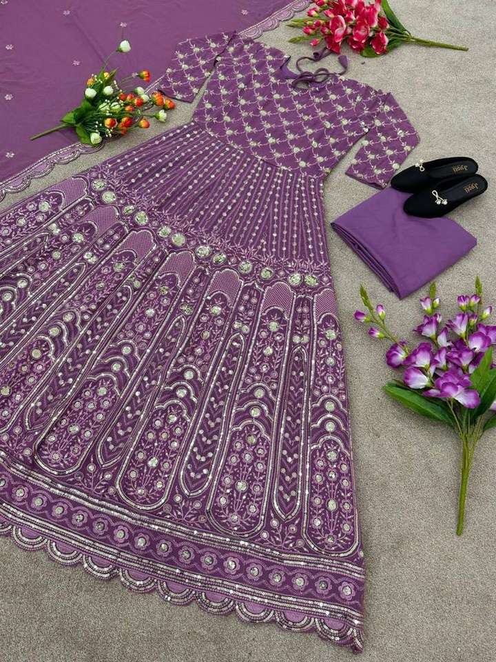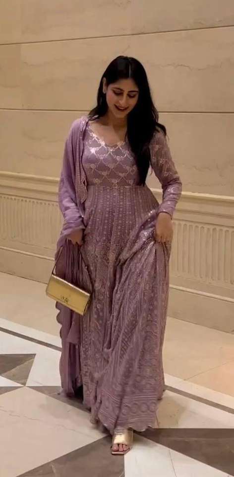 Lanzamiento de un nuevo diseñador Party Wear Look Gown Bottom y Dupatta Faux Georgette con bordado pesado Trabajo de secuencia de 5 mm