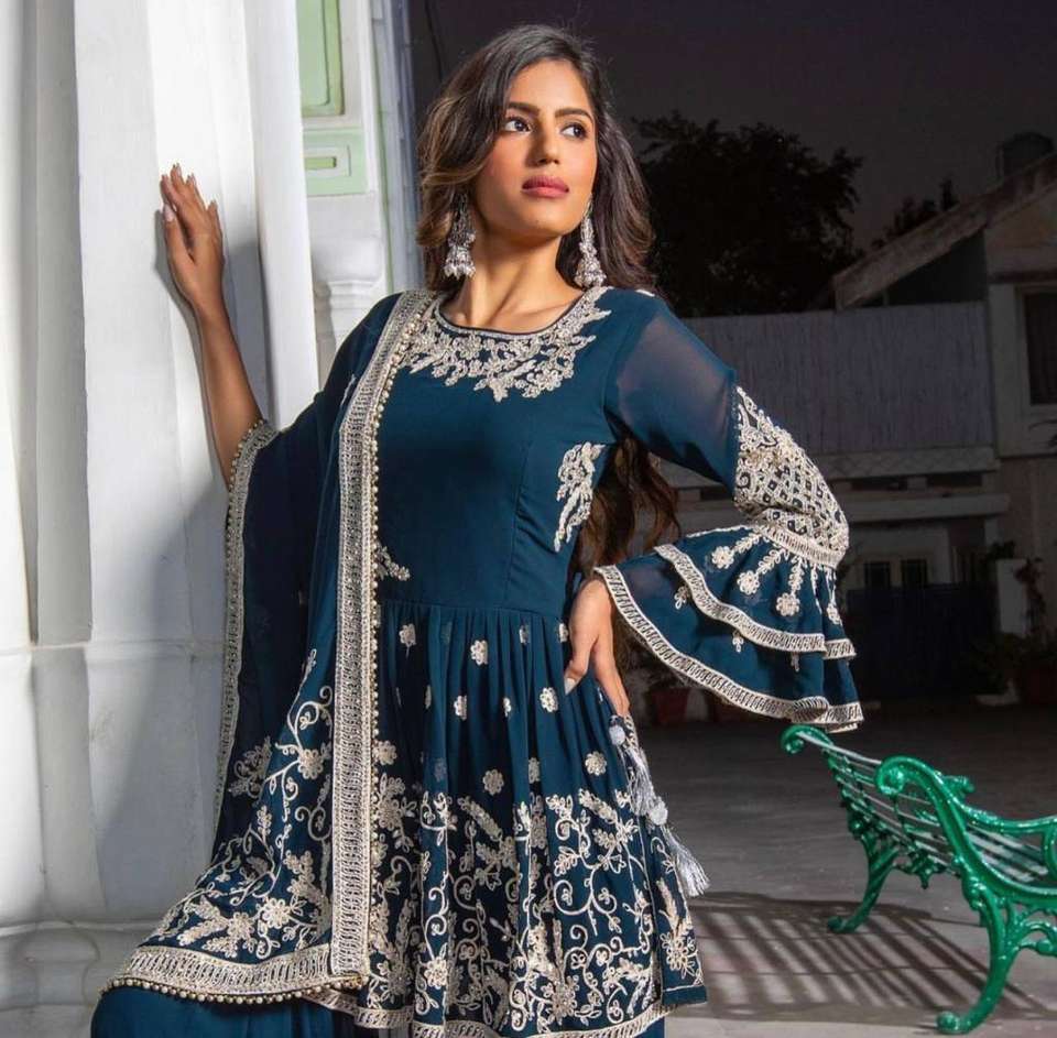 Lanzamiento de New Designer Party Wear Look New Kediya-Plazo y Dupatta con trabajo de bordado pesado a precio mayorista