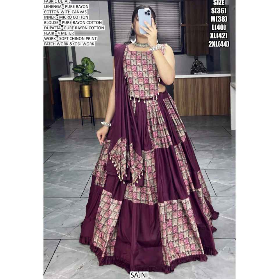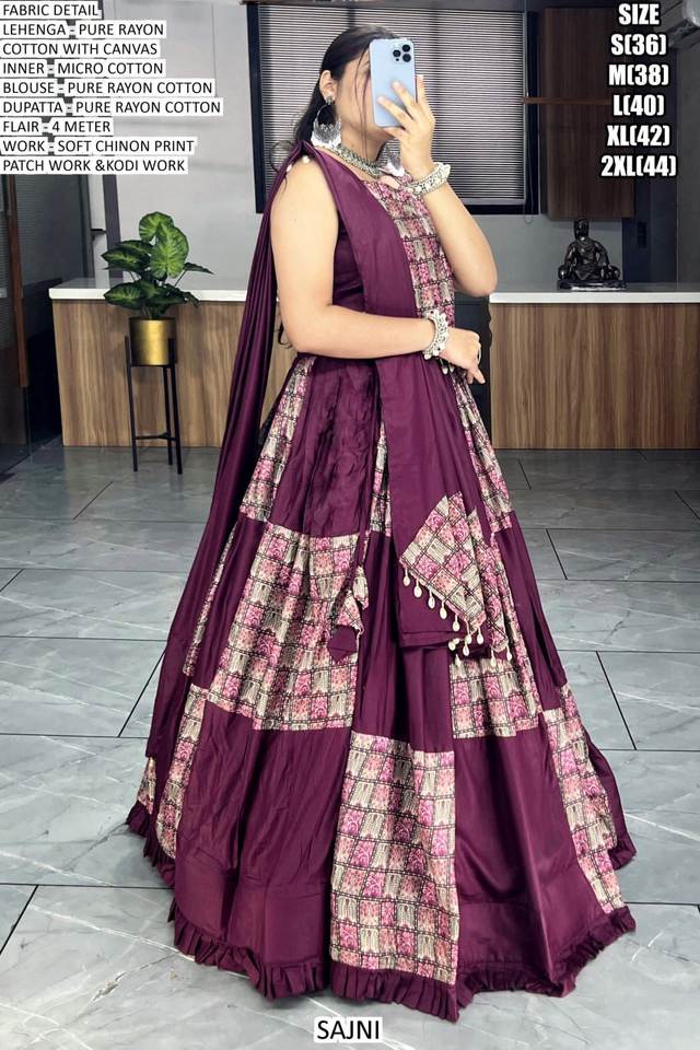 Lanzamiento de un nuevo diseñador de ropa de fiesta Lehenga Choli semicosido con tela Dupatta Set Pure Rayon Cotton