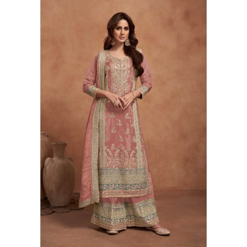 Salwar Kameez Kurti Plazo Dupatta de Piel Sintética con Bordado Personalizable para Mujer, Diseño Étnico Moderno, Ropa de Boda, Disponible en Existencias