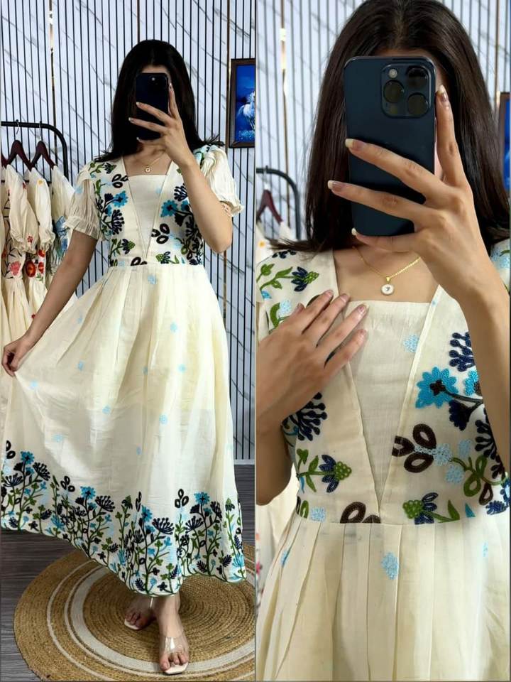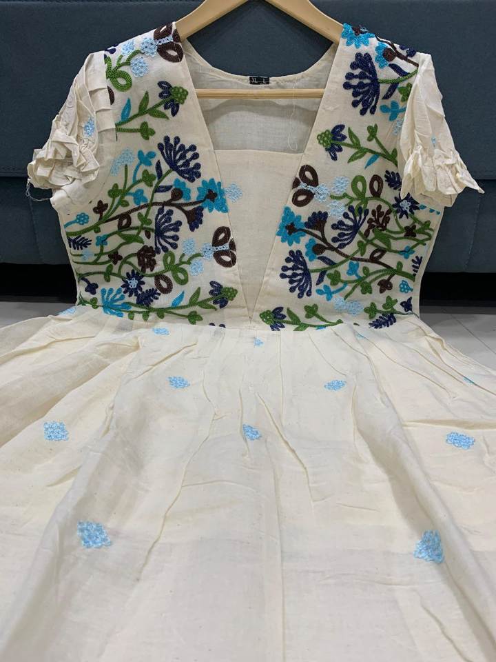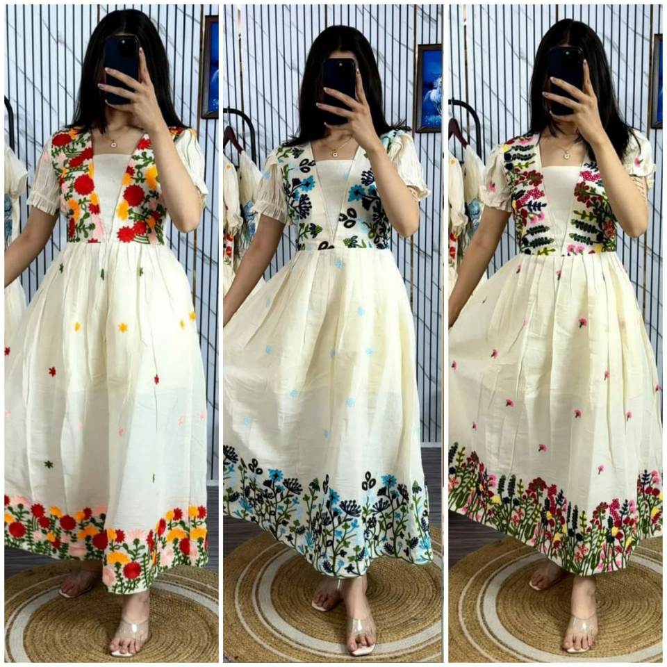 Lanzamiento de Super Hit Collection, Diseñador Kora Algodón con hilo multicolor trabajo Midi Dress. Una hermosa mezcla de elegancia