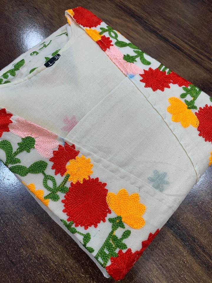 Lanzamiento de Super Hit Collection, Diseñador Kora Algodón con hilo multicolor trabajo Midi Dress. Una hermosa mezcla de elegancia