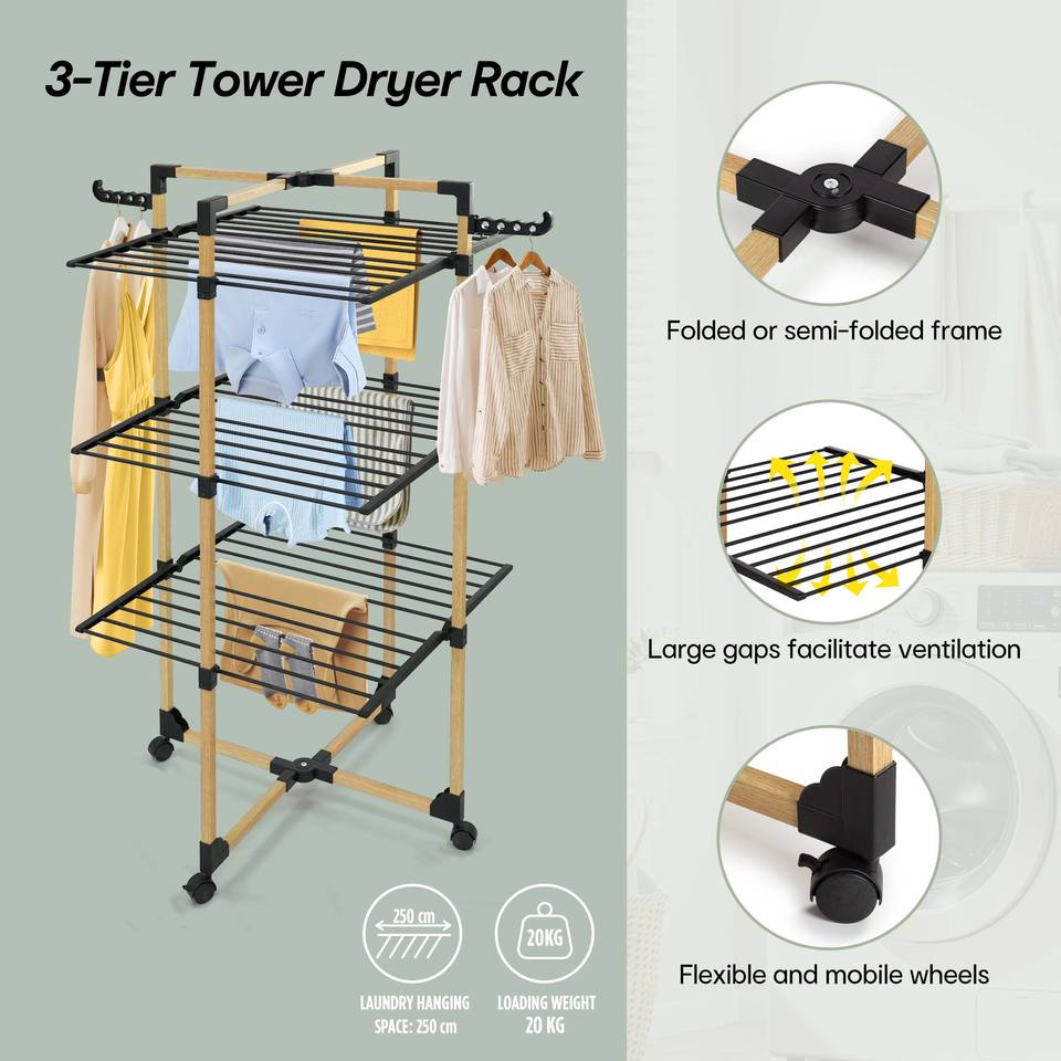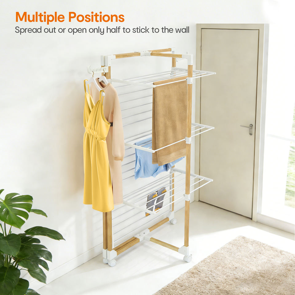 Tendedero de Ropa Plegable con Ruedas, 25M de Espacio de Secado, Ahorra Espacio, Uso Interior y Exterior