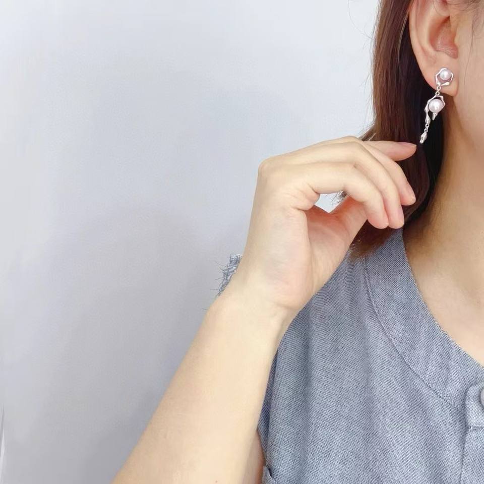 Pendientes Retro de Perlas Irregulares de Doble Cuentas, Color Plateado, Perla Preservada, Estilo Casual, Joyería de Moda al por Mayor