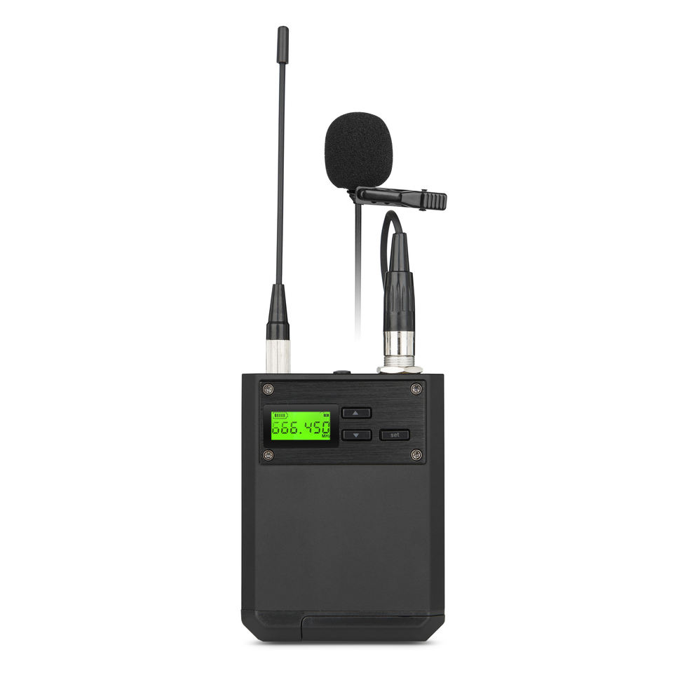 Micrófono Inalámbrico de Solapa UHF 2.4G de 4 Canales para Instructor de Fitness con Cancelación de Ruido y Largo Alcance