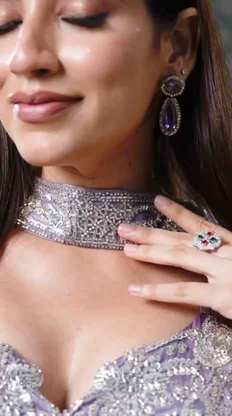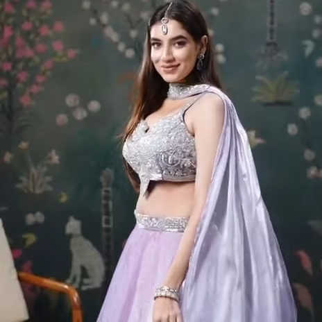 Conjunto de Lehenga Choli bordado en lavanda con blusa de lentejuelas y dupatta para mujer