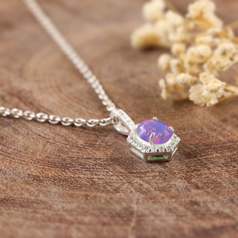 Collar con colgante de ópalo etíope de fuego de lavanda, joyería de piedra natal Vintage de Plata de Ley 925, regalo de octubre para ella