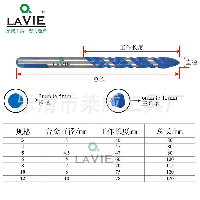 Broca multifuncional Lavie de 3-12 mm con vástago hexagonal para perforar metal, madera y azulejos