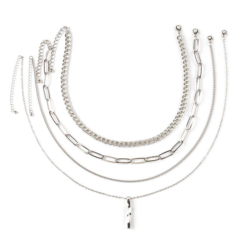 Collar de cadena en capas, collares con colgante de borlas de aleación de zinc de varias capas para mujer, joyería de moda en tono plateado