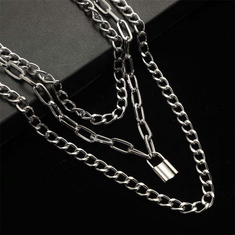 Layered Chain Necklace Neck Chains Lock Pendant Jewelry for Women Punk Choker Padlock Goth Jewelry Grunge Aesthetic Accessories