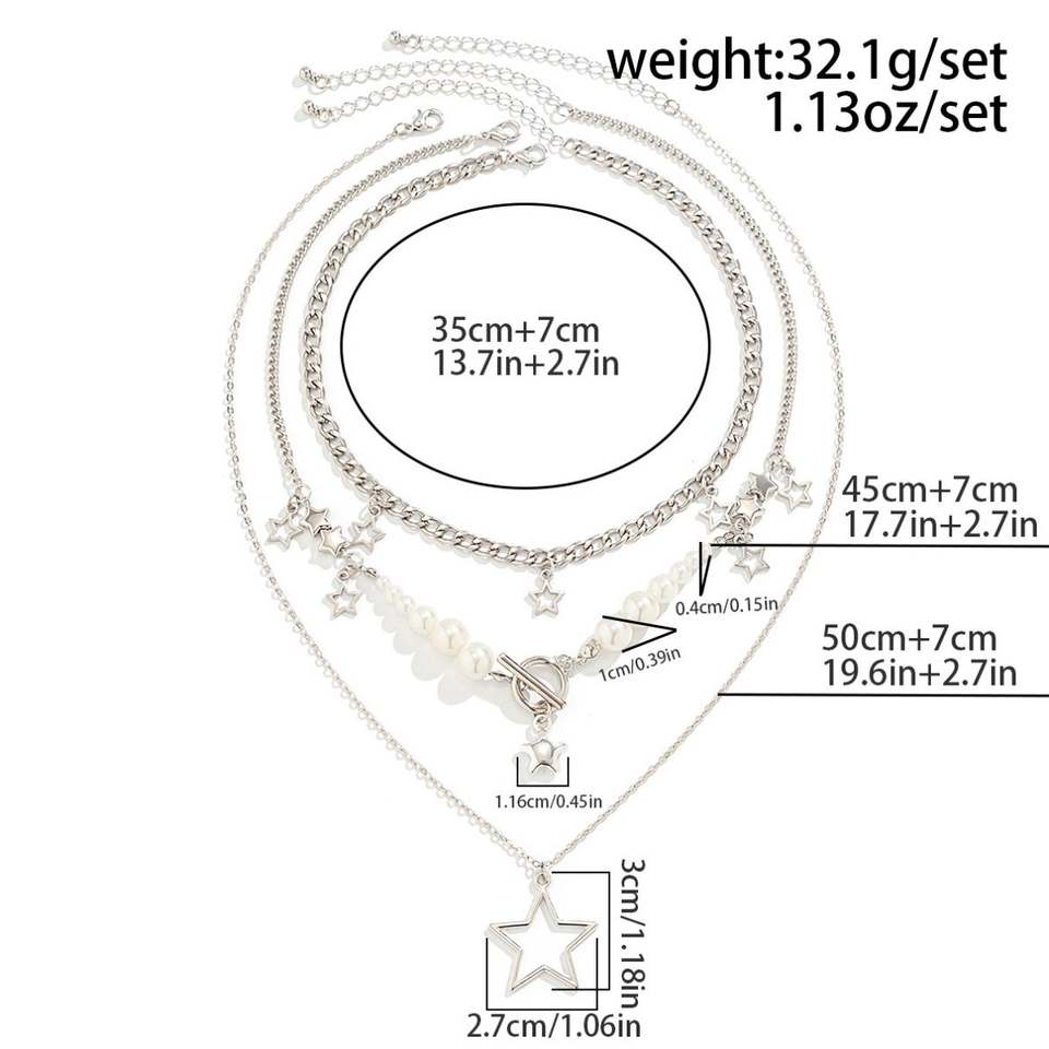 Collar con colgante de estrella de cadena en capas para mujer, Collar de perlas de imitación a la moda en el cuello, joyería de moda, regalo para niñas
