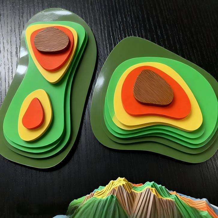 Modelo de Terreno con Líneas de Contorno en Capas y Coloración por Niveles, Ayuda Didáctica para la Enseñanza de Geografía
