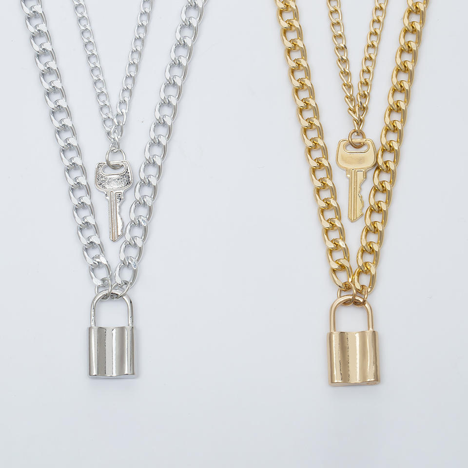 Collar en capas con colgante de llave y candado, diseño geométrico de aleación de zinc para mujer