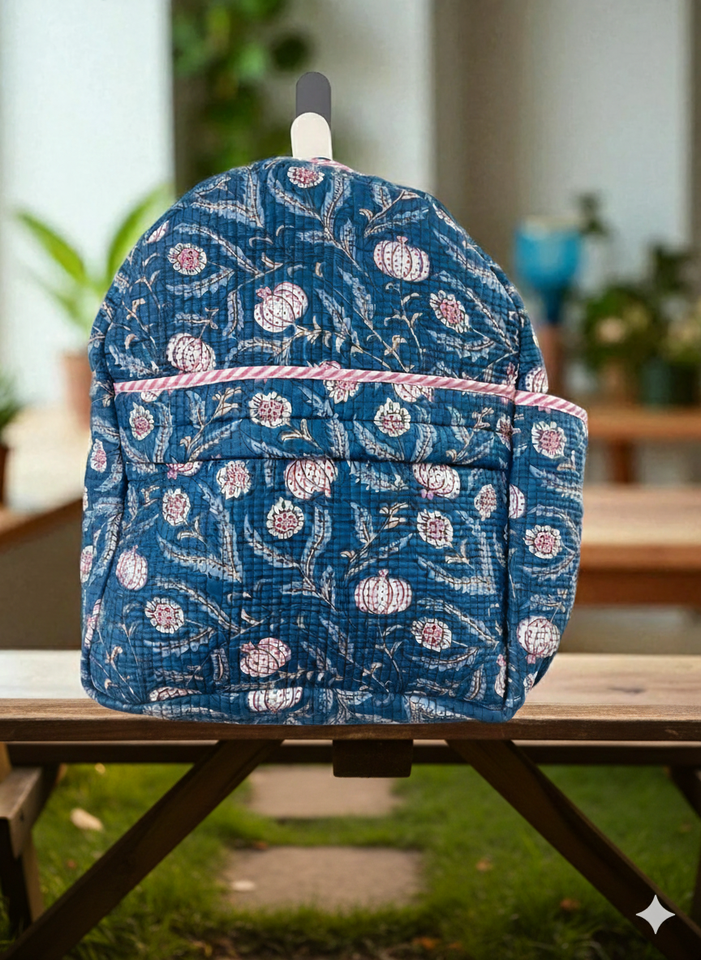 Mochila Táctica Le Souvenirs con Estampado Floral Azul, Unisex, Capacidad de 10 kg, Forro de Algodón Orgánico Ligero, Cierre de Cremallera