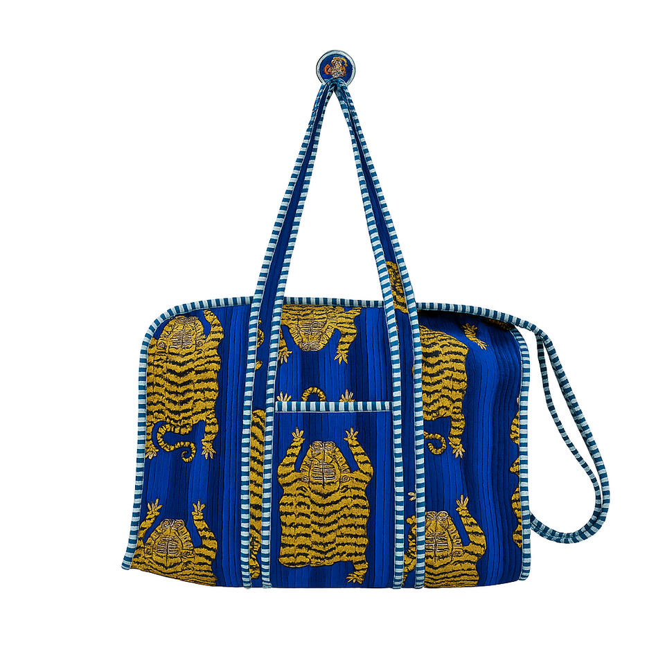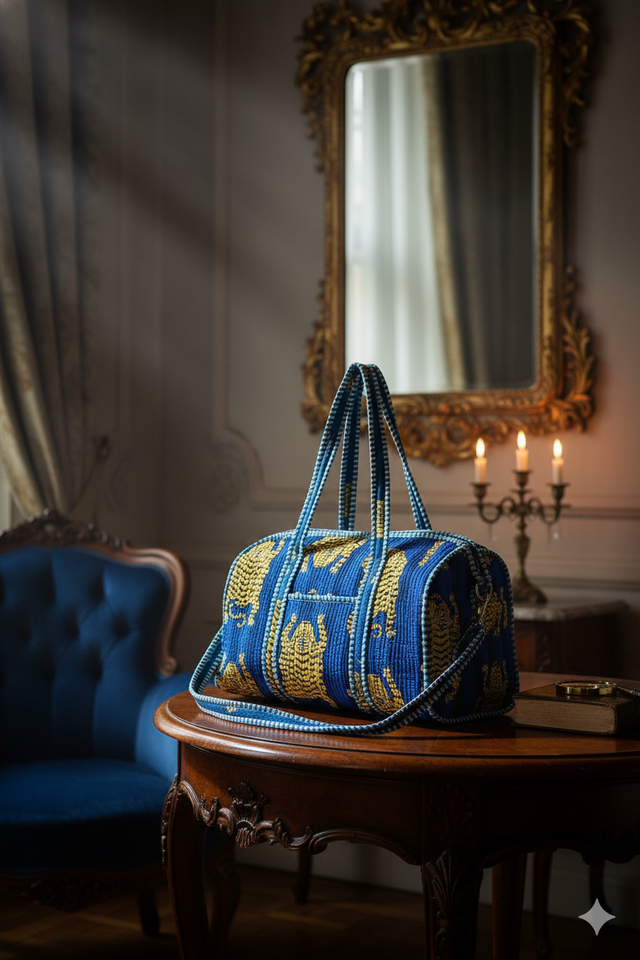 Bolsa de Viaje Deportiva de Algodón con Estampado Animal Azul de Alta Calidad y Lujo de Le Souvenirs, Bolsa de Lona Resistente de Gran Capacidad con Cierre Ecológico