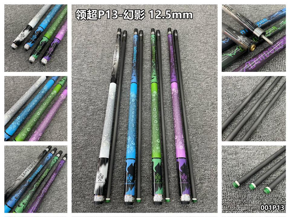 Leadsuper P13 High Tech 58 "Billar Pool Cue Stick 12,5mm Eje de fibra de carbono Diseño de piel de lagarto Patrón de alta calidad elegante