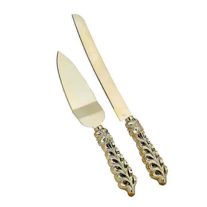 Diseño de hojas Juego de pasteles de 2 tonos Acero inoxidable de alta calidad 304 Juego de corte de pastel de lujo real Fabricante de cubiertos al por mayor 2023