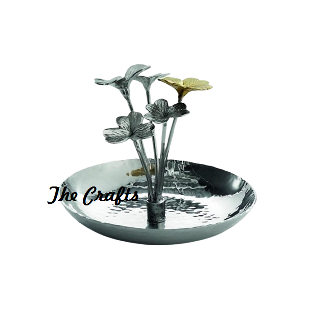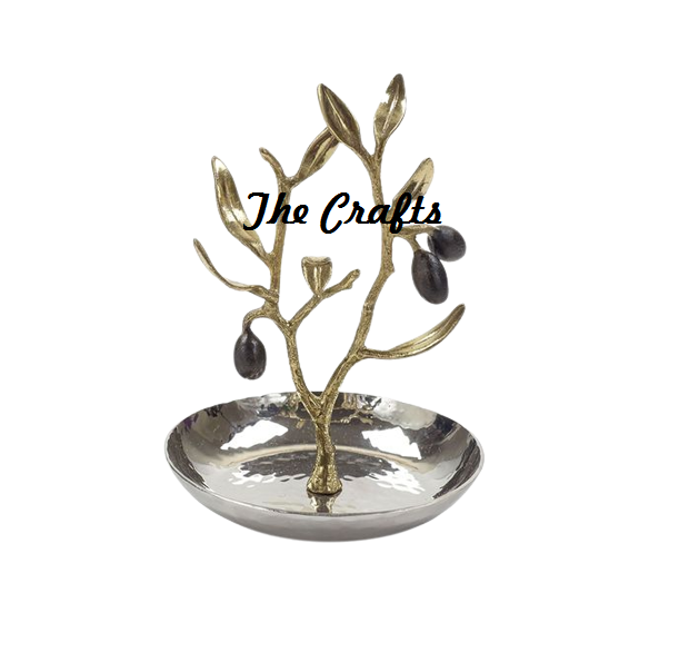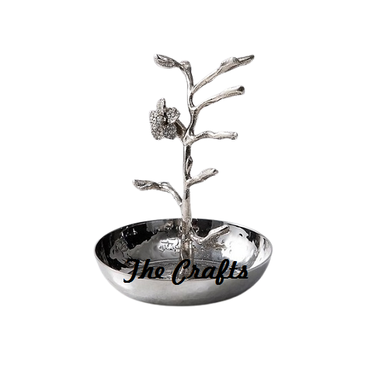 Soporte de exhibición de joyería decorativa con diseño de hojas Soporte de joyería martillado de acero inoxidable personalizado OEM a baja velocidad