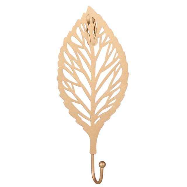 Gancho de pared de latón individual de Metal chapado en oro con diseño de hoja, decoración del hogar para oficina, gancho de pared de Metal hecho a mano, gancho de Metal barato