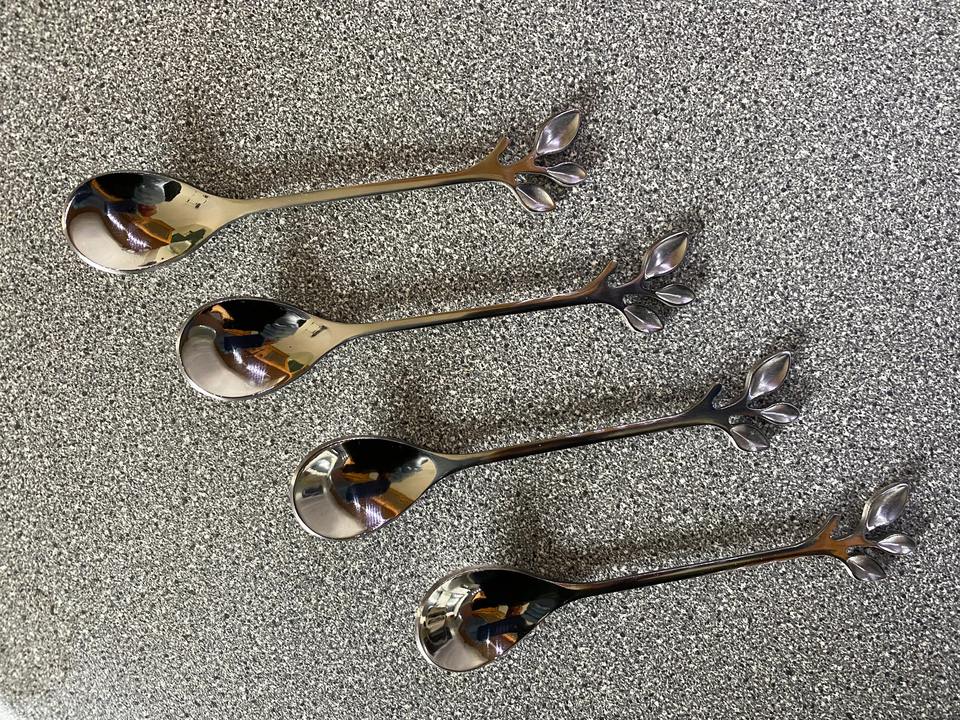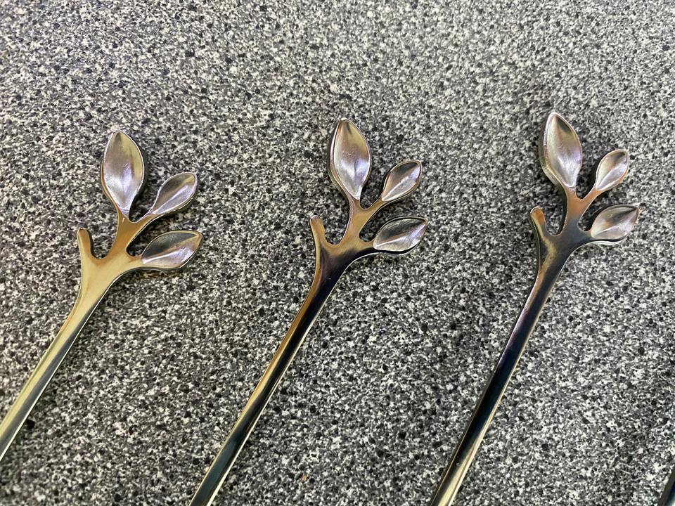 Mini cucharas de té de metal plateado con mango de diseño de hoja acabado duro para vajilla de Hotel accesorios de café