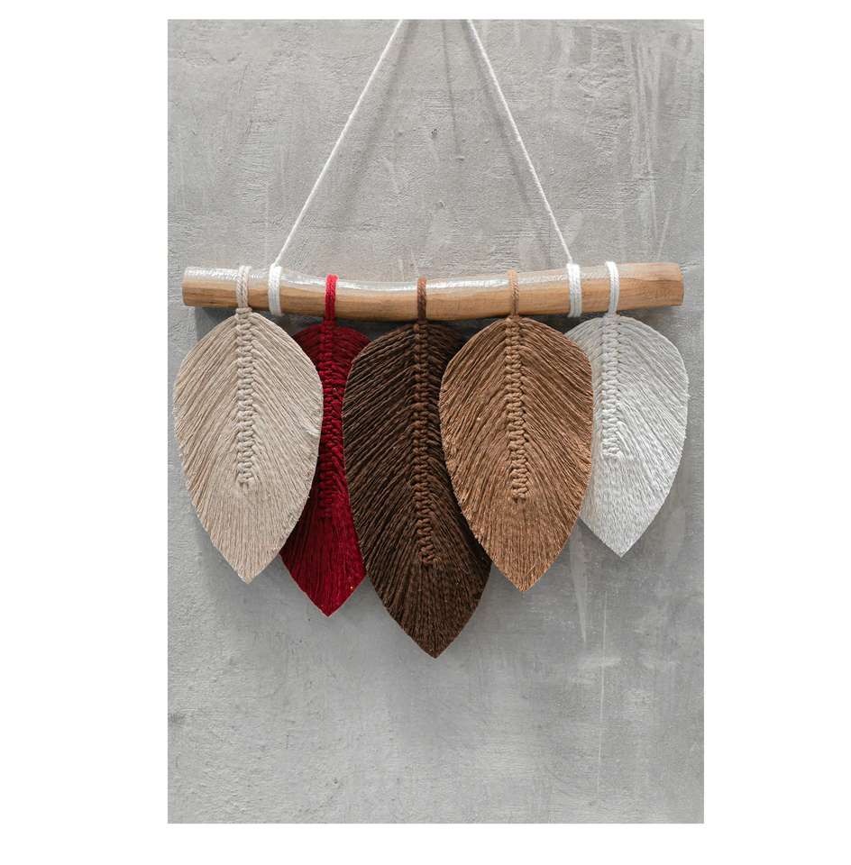 Colgante de pared de macramé hecho a mano con diseño de hojas, perfecto para sala de estar, decoración del hogar y la Oficina, arte de pared elegante